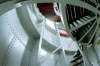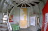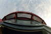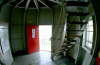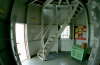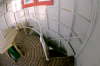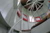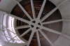 (Wegen der Enge im Turm sind diese Aufnahmen mit einem Super-Weitwinkelobjektiv ( 16 mm KB) gemacht worden. Bei diesen Objektiven entstehen optische Verzeichnungen. Die senkrechten Gerüstteile etc. sind in Wirklichkeit nicht krumm sondern werden nur verzerrt widergegeben )