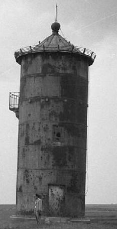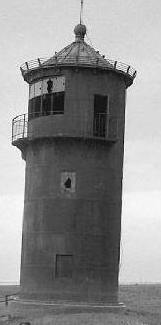 Auf den zwei Totalaufnahmen des Turms fällt auf, dass der Leuchtturm eine leichte Schräglage landeinwärts, also Richtung Osten, hat.